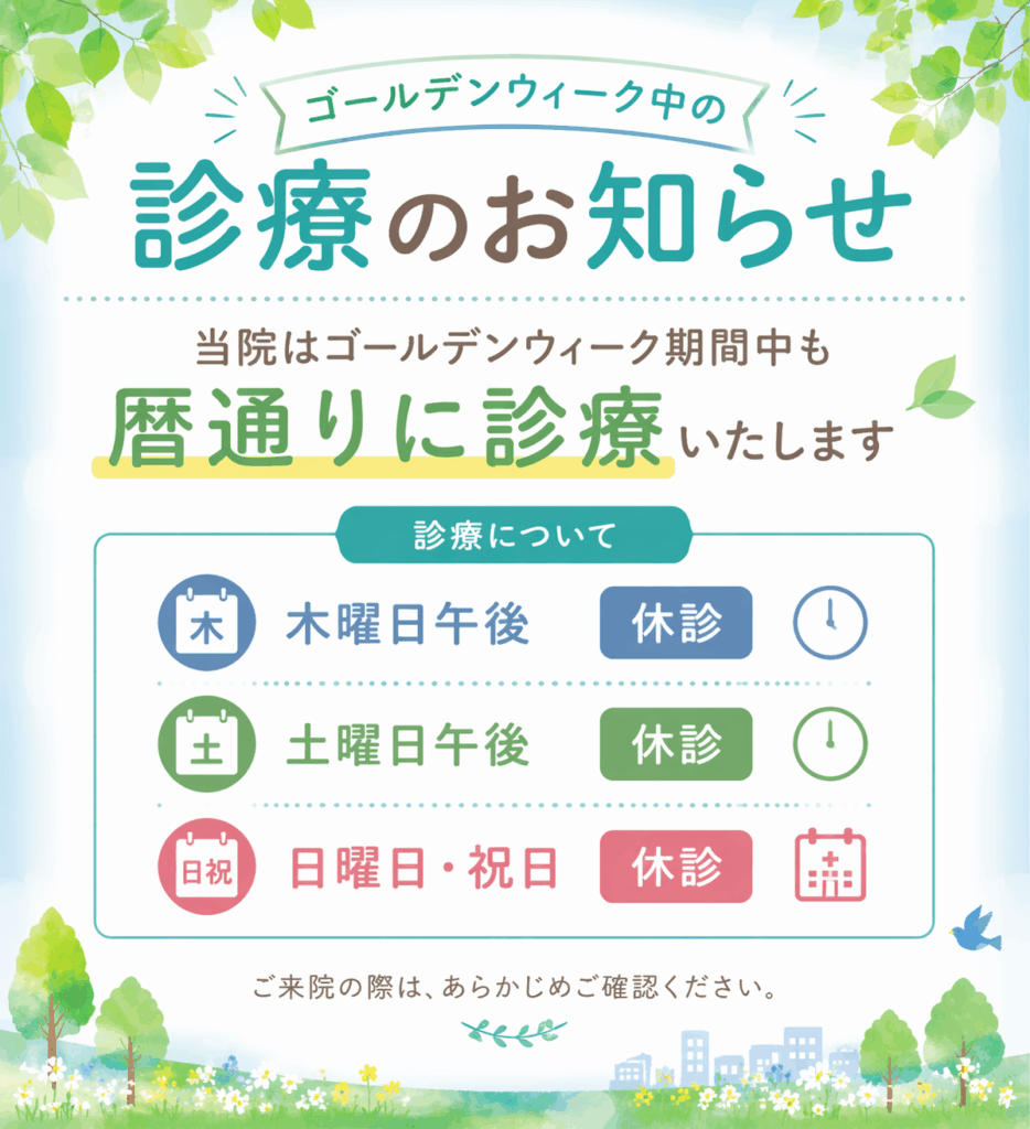 【中川区】サンセール ゴールデンウイーク中の診療について